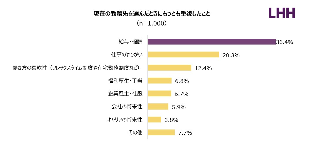 こうしたなか、今回LHH転職エージェントが実施した調査において、「転職で入社した現在の勤務先に満足している」と回答した働き手が、約7割に達していることがわかりました。転職の際にもっとも重視したことの1位に「給与・報酬」が挙げられていましたが、人手不足の高まりによってスキルと経験を身に付けた人財に対する需要はさらに高まっており、転職を通じて年収がアップする働き手も多くなっています。このことが、転職後の満足度が高くなっている理由のひとつになっていると考えられます。