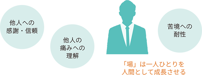 「新しいことに取り組めば失敗もしますし、傷付くこともあります。しかしそういうときこそ、助けてくれたり、失敗をフォローしてくれるのが、同じ職『場』の仲間です。こうした経験を繰り返すなかで、他人への感謝や信頼が生まれ、苦境への耐性もつきます。何より他人の痛みのわかる人間になる。それこそが仕事を通じた人間の成長です。『場』は、そこにいる一人ひとりを成長させるのです」(図3参照)